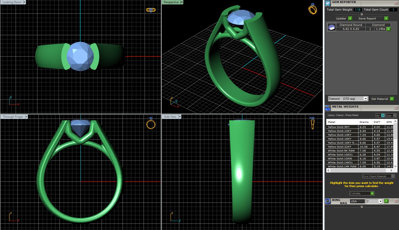 Wide sloping upswept shoulders to hold the round diamond in a dramatic half bezel setting.