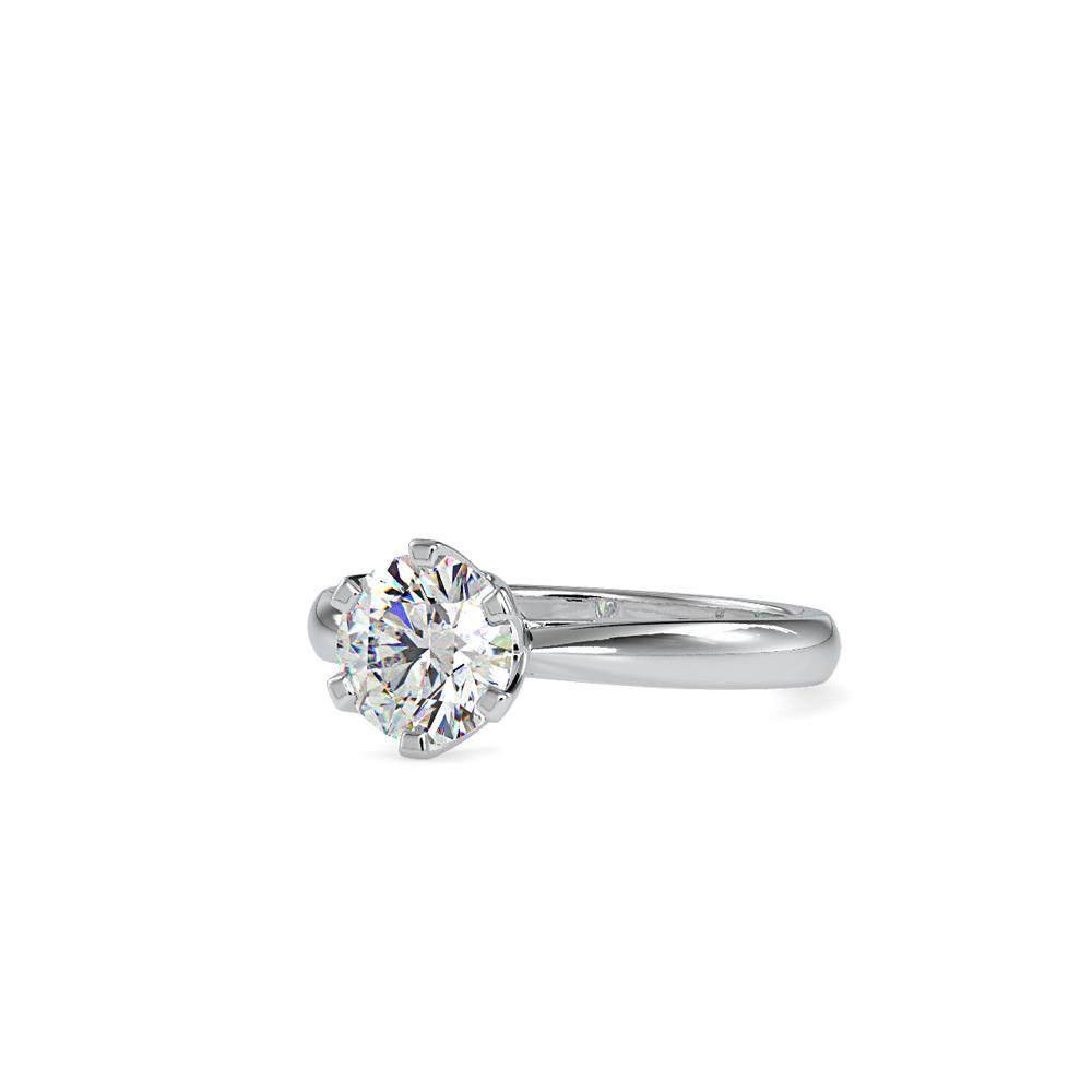 A modern classic Solitaire featuring a six prong tulip setting with the prongs being finished in a claw fashion. Ski tip shoulders to show case the solitaire.